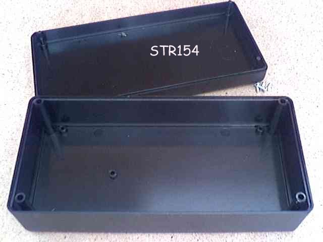 STR154 : SUPERTRONIC gyártmányú mûanyag doboz. Fekete színû, a külsõ mérete: 154x73x43 mm. A doboz fedél négy becsúsztatható müanyag csappal rögzíthetõ. A panel rögzítését négy mûanyag csap, illetve az ezekbe illeszkedõ - tartozék - csavarok segítik. A doboz képe összeszerelve , és szétbontva. A doboz ára : 1200 Ft. *****************************************************************