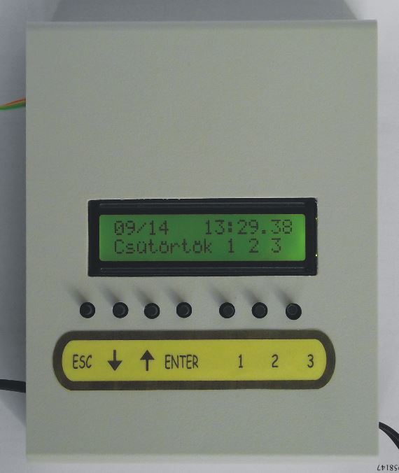 Hét napja szerint, PC-rõl programozható óra, LCD/LED kijelzõvel, 50 programhellyel, három relés kimenettel : |