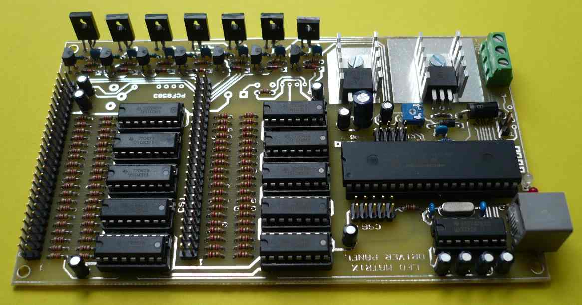 A LEDPIX2 meghajtó panel fényképe , a kijelzõ 7x40-es LED panel 3mm-es, és 8 mm-es LED-ekkel. |